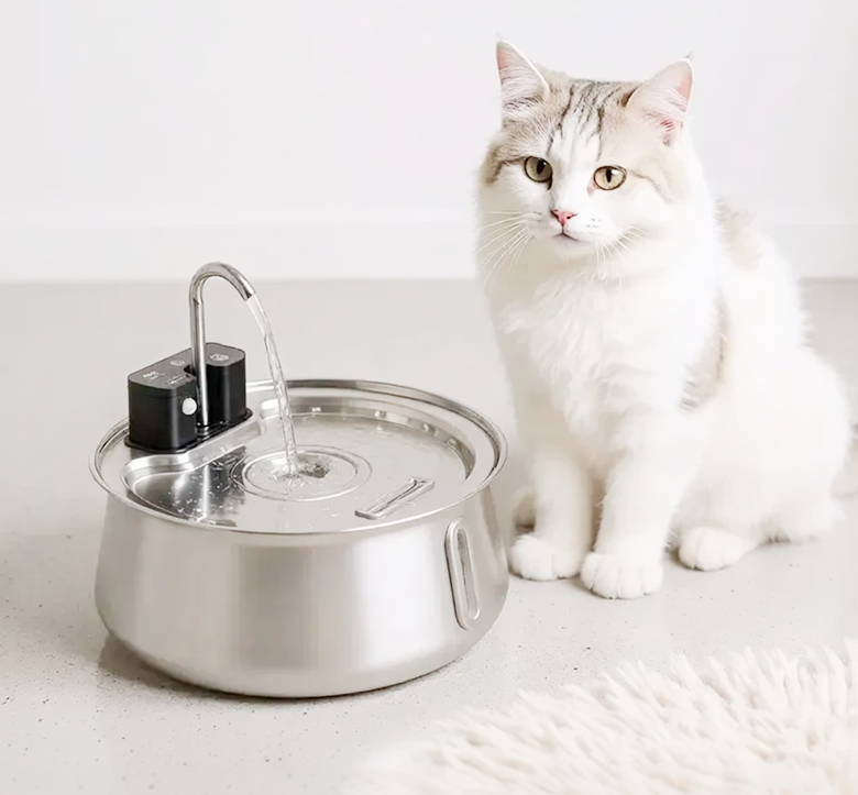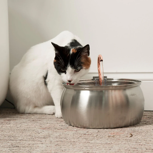 The stainless steel, wireless solution for picky drinkers. Quiet, clean, and cord-free—vet-recommended for kidney health.