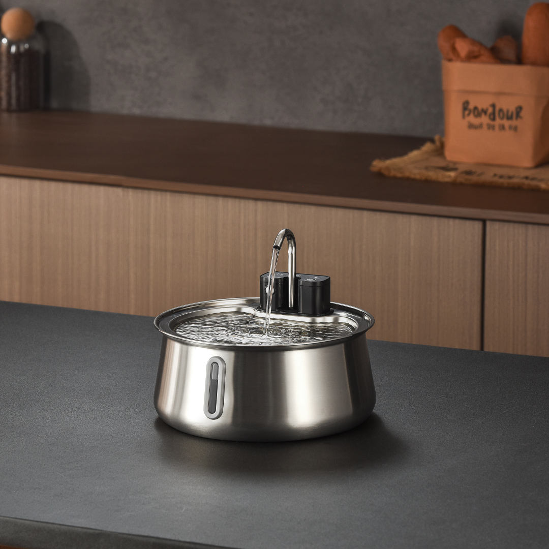 The only water fountain your cat will ever need. Completely silent and eliminates the need to turn on the tap, while providing your cat with fresh, filtered water all day long.