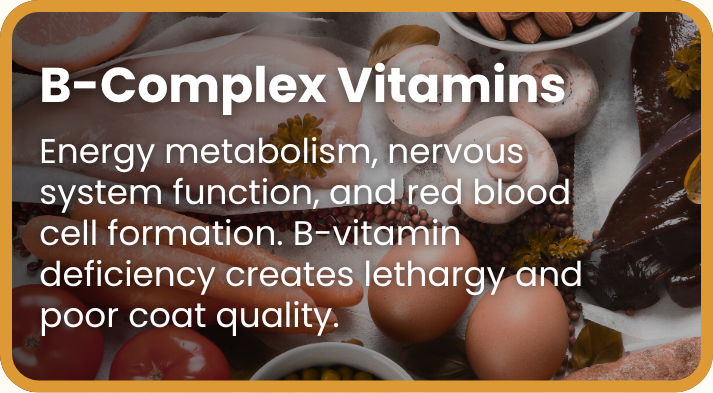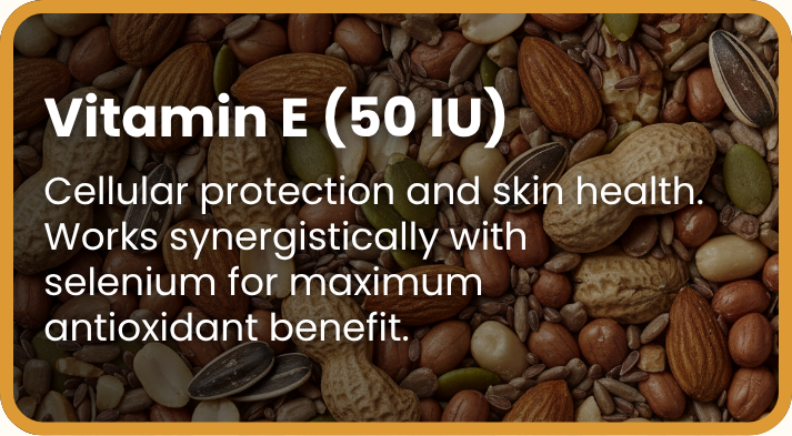 Omega 3, 6 & 9 fatty acids nourish from within — promoting a shinier, softer coat and reducing excessive shedding and dander.