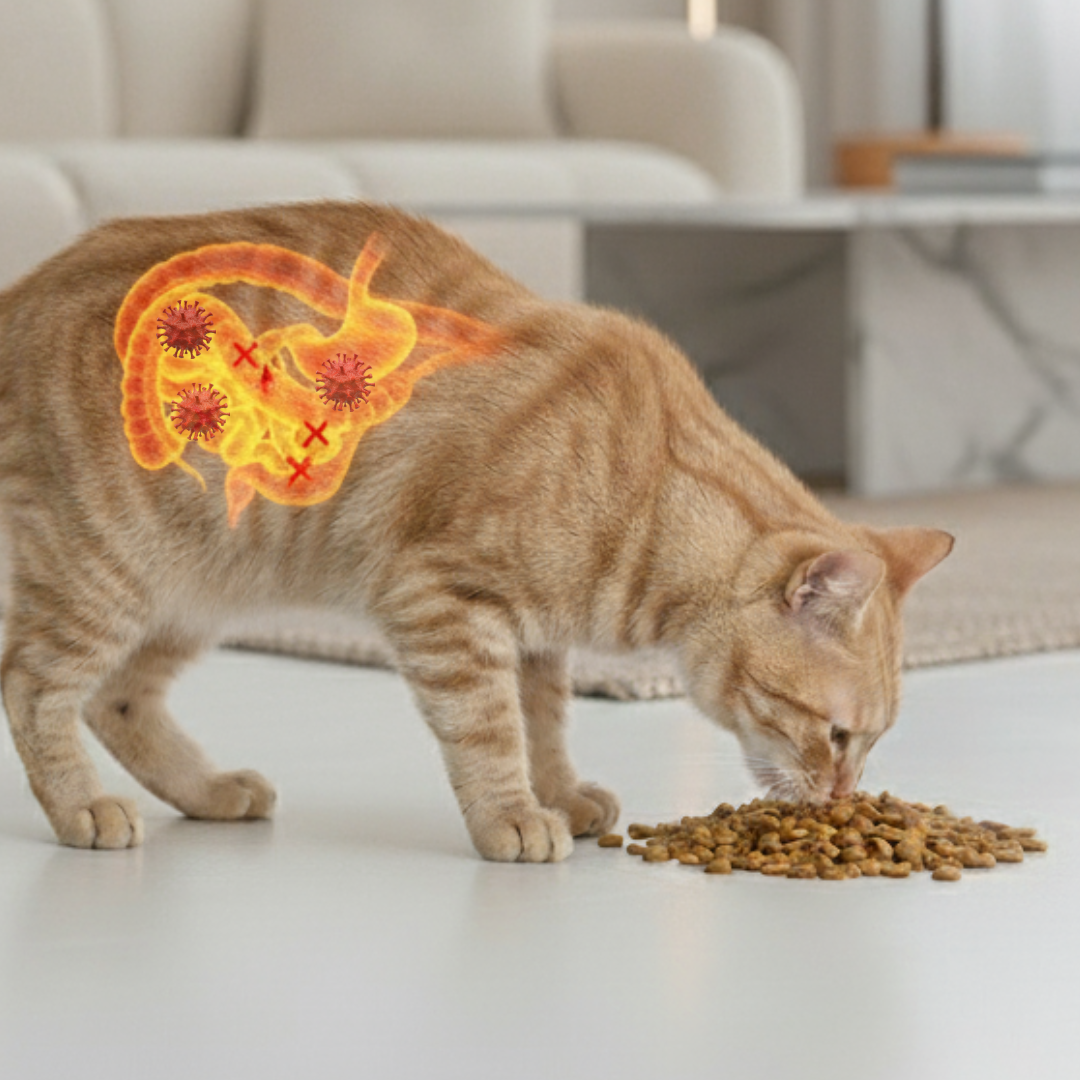 Probiotics improve nutrient absorption and reduce inflammation — helping sensitive cats better tolerate their regular food.