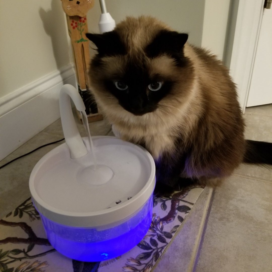 The only water fountain your cat will ever need. Completely silent and eliminates the need to turn on the tap, while providing your cat with fresh, filtered water all day long.