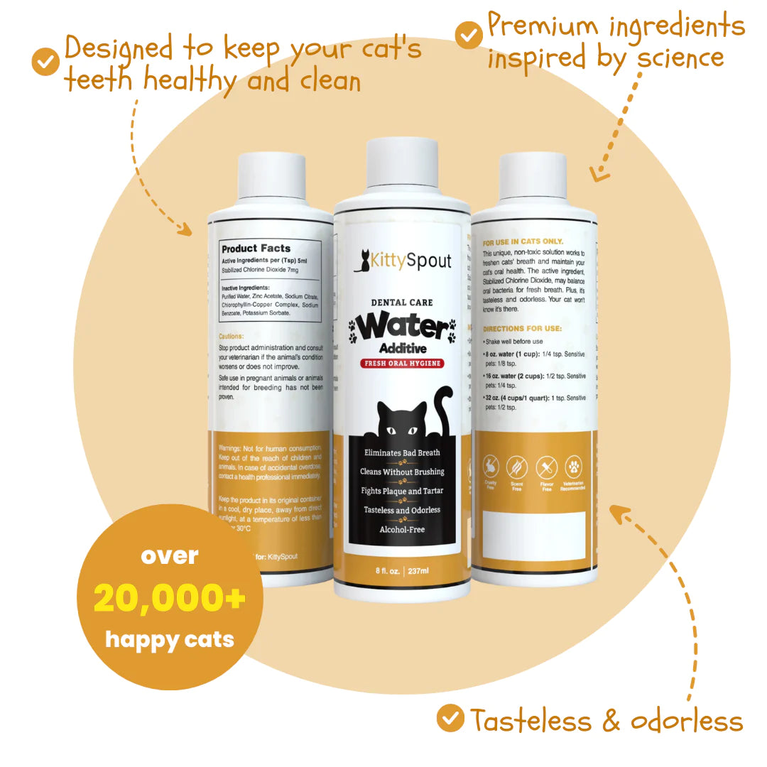 KittySpout's Cat Dental Formula contains premium ingredients inspired by science that support healthy teeth and gums. Loved by thousands of busy cat parents for its deep cleansing nature.