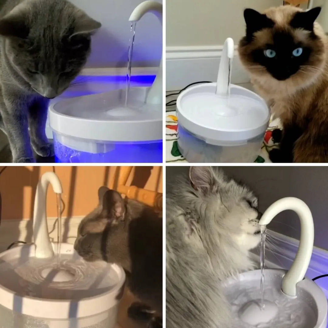 The only water fountain your cat will ever need. Completely silent and eliminates the need to turn on the tap, while providing your cat with fresh, filtered water all day long.