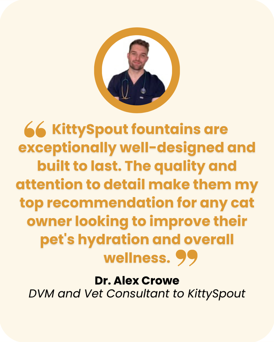That's why veterinarians recommend the KittySpout. It entices your cat to drink more water by automatically giving them fresh, clean water all day long. Which is especially effective if your cat prefers to eat dry food.